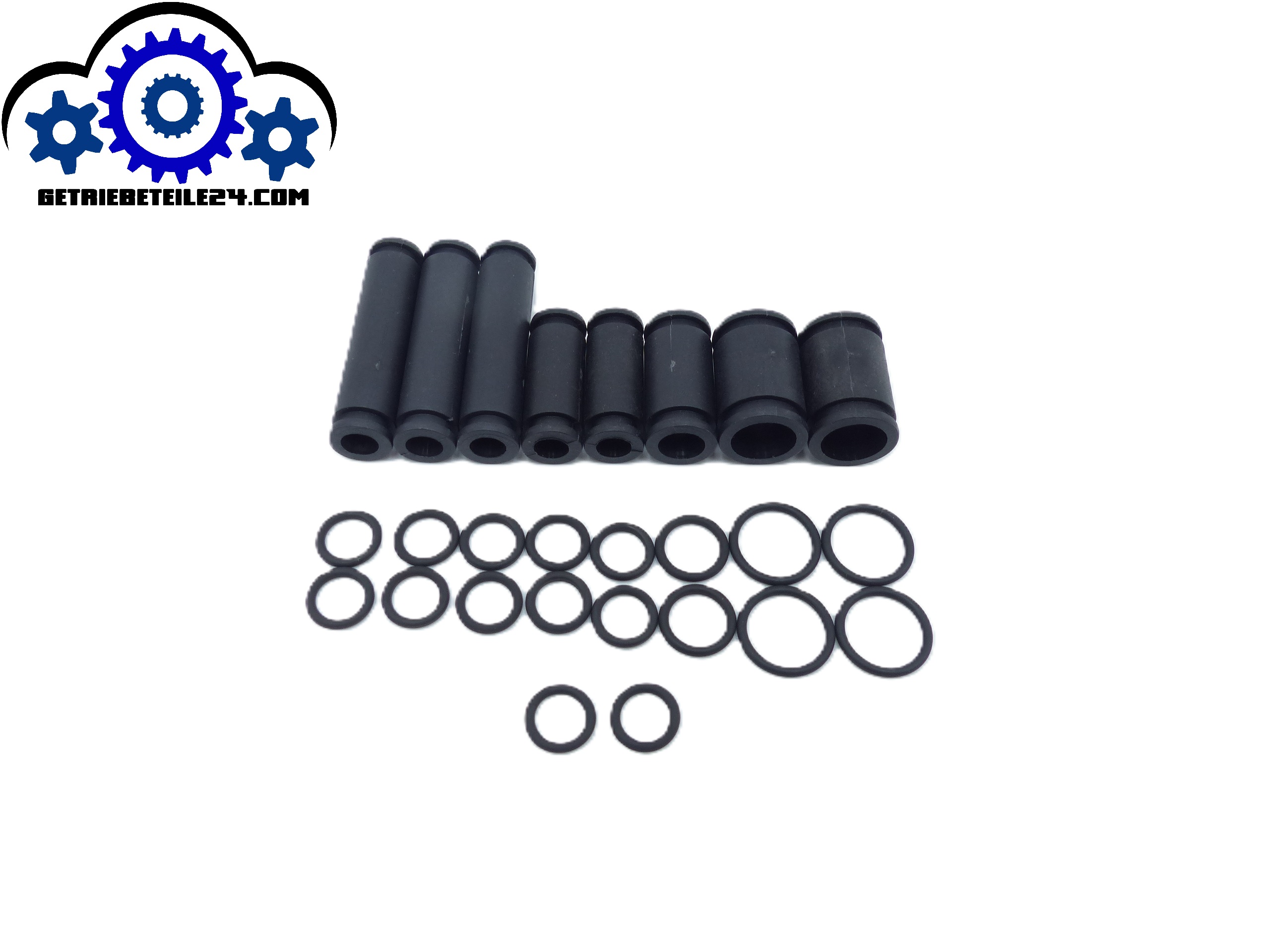Nicht enthalten sind die beiden Ölrohre, die fest mit der Mechatronic verbunden sind. Diese können nur entfernt werden, wenn die Mechatronic zerlegt wird. Bei der Getriebereparatur werden diese beiden Ölrohre nicht beschädigt. Die O-Ringe hierfür sind jedoch im Satz enthalten.